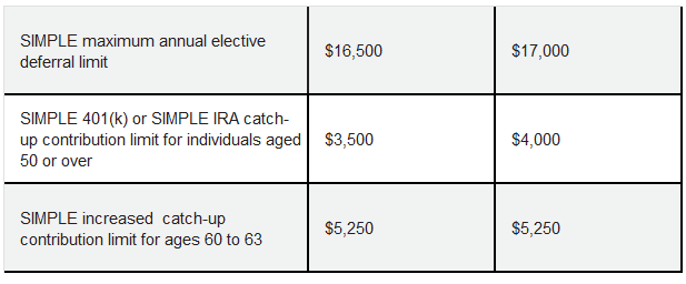 Employees participating in a SIMPLE retirement plan can defer up to $17,000 and those age 50 or older can defer up to an additional $4,000.